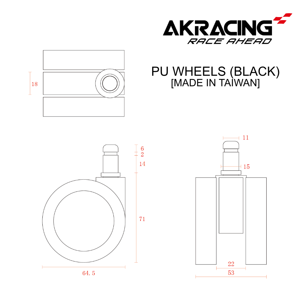 AKRacing チェアの交換用ロック付き標準ホイール。